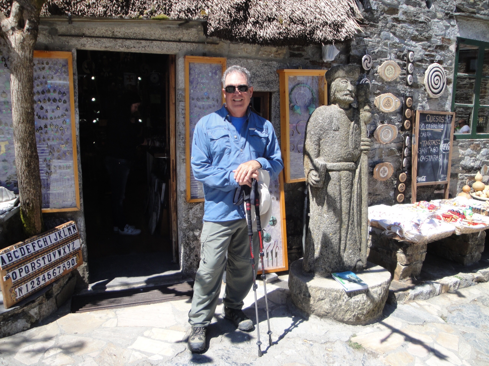 Yesterday, was a real grind. We left Triacastela, a village of 900 people named in Galician after Three Castles, none of which still survive. Historically, this was a very significant resting place for pilgrims of the Middle Ages coming down from the mountain (like we did the day before). When leaving Triacastela we started a steady 7 kilometer climb and never seemed to let up. The remainder of the way to Sarria was basically a descent but we still were going up and down the river valleys which seem to be everywhere in Galicia. This was also the day I decided to “go it alone” and leave the girls behind. I’ve been wanting to see how well I would do finding my own rhythm. Yesterday I found it. Incredibly, at least for me, we’ve now walked more than 400 kilometers. My body is really adjusting to the daily 20+ kilometer walks. The last time I saw the girls was in the village of Furela, 9.8 kilometers into our day. The next 15 kilometers I just bolted. I didn’t speak to a single individual (no really!) except for an American career diplomat, Carol, who turned 70 this year and started her Camino in St. Jean Pied du Port in France. We spoke for about 5 kilometers and parted in Sarria. Anyway, this was a day that I could really think and meditate for a few hours. It was wonderful!